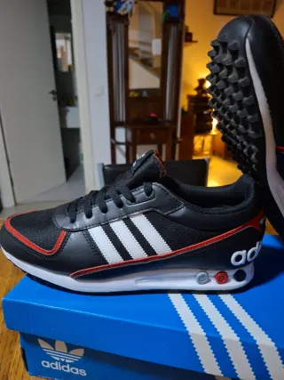 Zapatillas deportivas Adidas L.A. Trainer II son una pasada si te quedasteis con las ganas no busques más jijiji , me quedan justas, en excelente estado como nuevo ni un rasguño ni marcas de uso ,solo roto un poco el forro por dentro parte de atrás sale en la penúltima foto, este modelo ya no lo encontrarás y de esta calidad, y menos en estas condiciones, algo negociable por dicho desperfecto. - Diseño deportivo con detalles en rojo. - Cierre de cordones. - Suela con tacos.