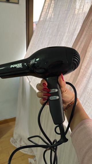 Secador de pelo en color negro. - Modelo Power Flow. - Diseño ergonómico. - Dos temperaturas y dos intensidades. Incluye secador de raices y difusor de rizos NO SE ENVIA RECOGIDA EN CAMARMA DE ESTERUELAS