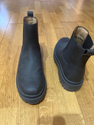 Botines estilo chelsea con suela gruesa. - Material exterior de cuero. - Diseño elástico en los laterales. - Tirador trasero para facilitar el calce.