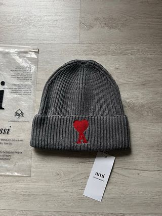 Gorro Ami Paris Gris Corazón Rojo