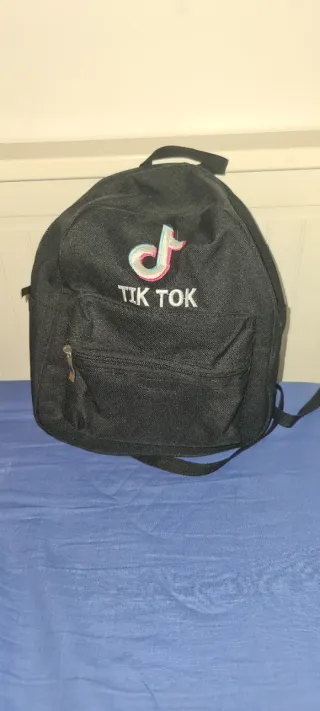 Mochila con el logo de TikTok. - Diseño moderno y juvenil. - Compartimento principal espacioso. - Bolsillo frontal con cremallera.