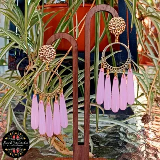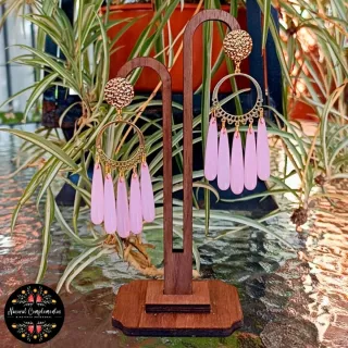 Pendientes de flamenca con un diseño elegante y llamativo. - Círculo dorado con detalles. - Colgantes en forma de lágrima color rosa. - Cierre de presión.