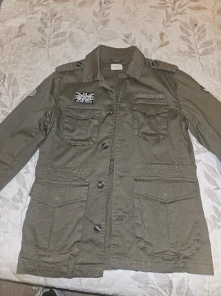 Chaqueta de estilo militar para hombre. Presenta un diseño con múltiples bolsillos y detalles inspirados en la moda militar. - Cierre de botones. - Bolsillos en la parte delantera. - Parche decorativo en la manga. - Insignia A.M. ARMY en el pecho.