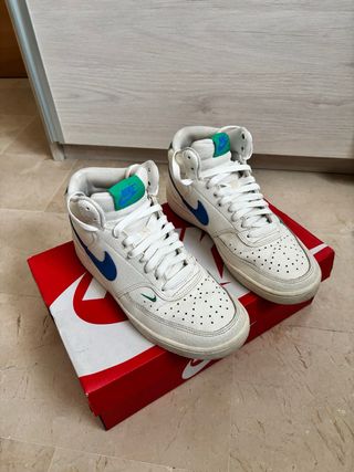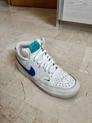 Zapatillas altas Nike Court Vision Mid en color blanco con detalles en azul y verde. Muy poco uso. PRECIO NEGOCIABLE.