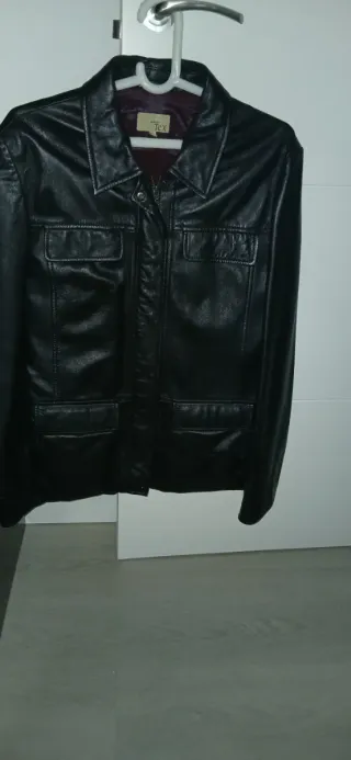Chaqueta de cuero para mujer. - Diseño clásico con cuello. - Cierre de cremallera. - Dos bolsillos superiores con solapa. - Dos bolsillos inferiores.