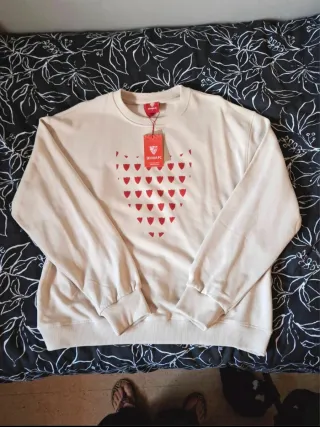 Sudadera con un diseño original del Sevilla FC. - Color beige. - Estampado de corazón en rojo. - Cuello redondo y mangas largas.