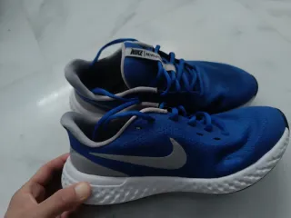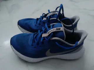 Zapatillas deportivas Nike en color azul con detalles en gris. Perfectas para correr o para el día a día. - Diseño moderno y ligero. - Cierre con cordones. - Suela blanca con relieve.