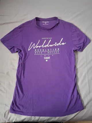Camiseta morada con estampado Worldwide Revolution de Primark. - Diseño Worldwide Revolution con texto (Since Day One), Back + Beyond y el año 1995. - Cuello redondo y manga corta.