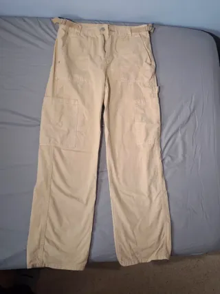 Pantalón cargo de corte recto y estilo casual. - Bolsillos amplios en los laterales. - Cintura con trabillas para cinturón. - Cierre de botón y cremallera.