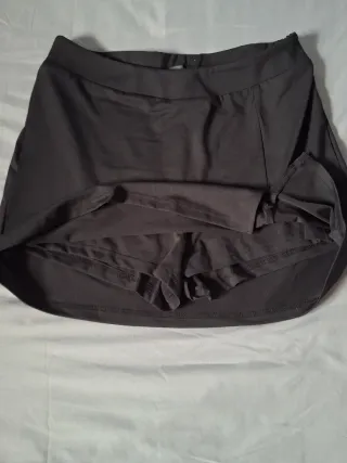 Falda corta de color negro con un diseño moderno. - Tejido suave y cómodo. - Abertura lateral. - Cintura elástica.