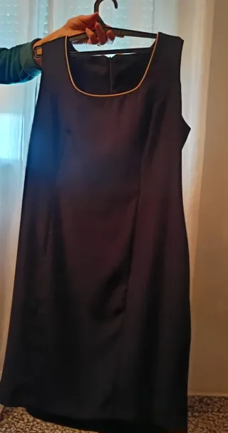 Elegante vestido negro con un detalle de ribete blanco en el cuello. - Diseño en tirantes - Corte recto. - Ribete en escote cuadrado.