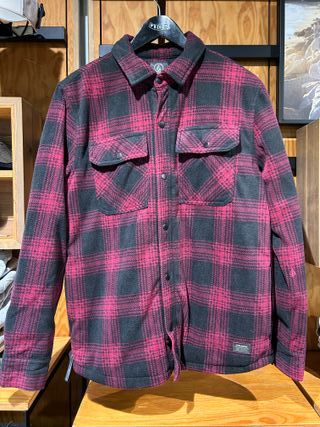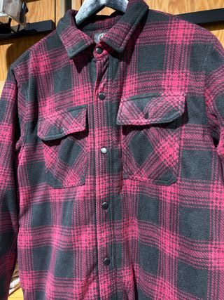 Disponible en talla S / M. Camisa de cuadros de la marca Volcom. - Diseño a cuadros en tonos rojos y negros. - Dos bolsillos en la parte frontal. - Cierre de botones.