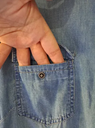 Camisa vaquera de manga larga. - Cierre de botones. - Dos bolsillos en el pecho. - Cuello camisero.