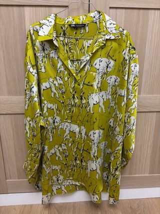 Camisa oversize de Zara con estampado de elefantes, talla M pero es muy grande, sirve para L y XL, como nueva! Palabras clave: nueva, larga, oversize, tirantes, manga corta, pantalón, vaquero, pitillo, jeans, camisa, camiseta, Slim, entallada, ajustada, zara, bermuda, short, tejanos, corto, largo, marca, barato, zapatos, calzado, chino, vestir, sport, deporte, zapatillas, hombre, mujer, negro, rojo, blanco, blanca, azul, morado, rosa, beige, camel, marino, verde, militar, chico, chica, talla, s, m, l, XL, xxl, 34, 36, 38, 40, 42, nuevo, polo, gafas, sol, óptica, casa, hogar