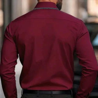 Camisa de vestir para hombre con un diseño moderno y elegante. - Cuello con estampado. - Puños con estampado. - Detalle de pespuntes en la botonadura.