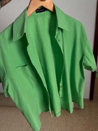 Camisa 2000’s de manga corta con un vibrante color verde. - Cuello camisero. - Bolsillo en el pecho. - Cierre de botones.