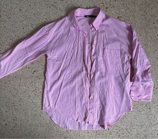 Camisa de manga larga de la marca Zara en color rosa. Presenta un diseño clásico con cuello y botones frontales. - Cuello camisero. - Cierre de botones. - Bolsillo en el pecho.