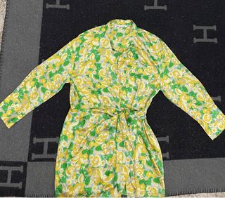 Camisa larga con un llamativo estampado floral y de volutas. - Diseño de manga larga. - Cinturón a juego para anudar. - Cuello camisero.
