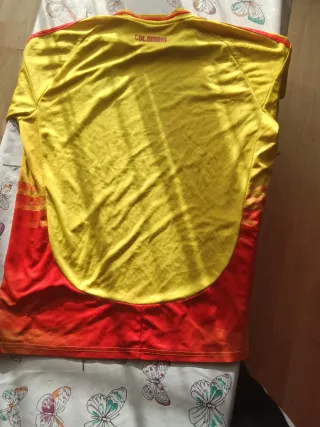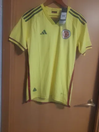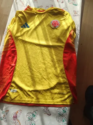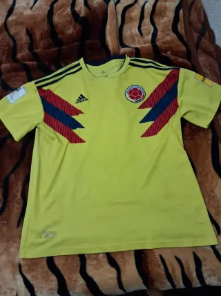 Camiseta de la selección de Colombia. - Diseño con los colores amarillo y rojo. - Logo de Adidas en azul. - Escudo de la selección colombiana. Se aceptan cambios