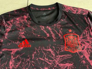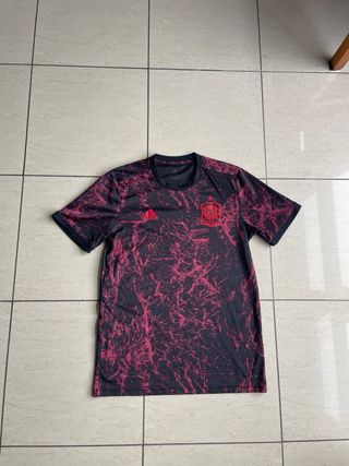 Camiseta Adidas de la Selección Española, con un llamativo diseño en tonos negro y rojo con efecto marmolado que le da un estilo moderno y diferente. Confeccionada en tela técnica tipo poliéster, ligera, transpirable y cómoda, ideal para deporte o uso diario. ✔️ Tela técnica Adidas (poliéster transpirable) ✔️ Corte deportivo y cómodo ✔️ Escudo de la Selección Española con estrella ✔️ Logo Adidas en el pecho ✔️ Ideal para entrenar, vestir casual o para aficionados Una camiseta ligera, cómoda y con personalidad, perfecta para quienes buscan algo diferente dentro del estilo futbolero. 📦 Lista para envío inmediato