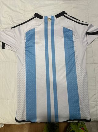 Camiseta de la selección argentina de fútbol, talla M. - Diseño a rayas verticales blancas y celestes. - Escudo de la AFA y logo de Adidas. - Parche de campeón del mundo FIFA.