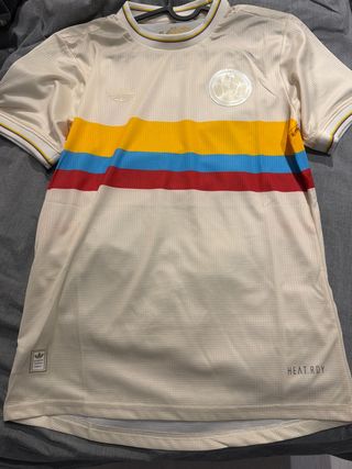 Camiseta de la selección de Colombia con diseño distintivo. - Franjas horizontales en amarillo, azul y rojo. - Logo de Adidas bordado. - Detalle HEAT.RDY. Talla L,al ser slim fit sirve para M (tallaje justo) (+ de 120 valoraciones 5 estrellas en mi perfil)