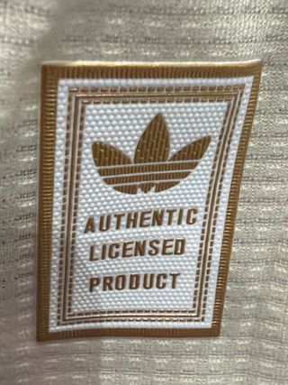 Camiseta de fútbol del Real Madrid. - Diseño clásico en blanco con detalles dorados. - Logo de Adidas y escudo del club. - Patrocinio de Bwin. escucho ofertas gracias