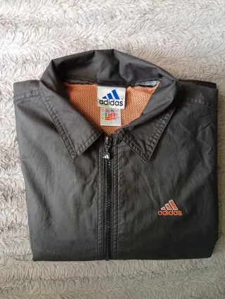 Chaqueta cortavientos Adidas vintage original (era Y2K, finales de los 90) Un diseño único con cuello tipo camisa y un contraste espectacular entre el gris antracite exterior y el forro de rejilla naranja vibrante • Estado: Excelente conservación, sin roturas • Detalles: Logo "Performance" bordado, cierre de cremallera con tirador logado y puños ajustables con botones a presión • Talla: M de mujer (IT 44 / D 38) Corte ligeramente boxy, muy cómodo y actual • Tejido: Exterior técnico resistente al viento e interior transpirable Ideal para amantes del estilo retro, streetwear o gorpcore #AdidasVintage #Y2K #Streetwear #Gorpcore