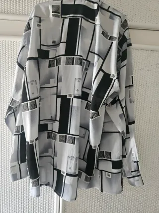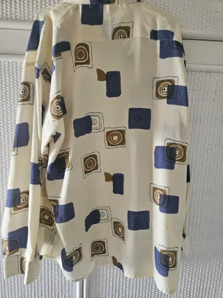 Camisa de manga larga con un llamativo estampado geométrico. -Puesta solo una vez - Es ceñida - Diseño con cuello - Cierre de botones -Medidas de hombro a hombro 44cm y de sisa a sisa 49cm - Logo de la marca visible