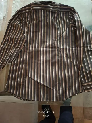 ‼️Hacer ofertas y si alguna me convence lo aceptare debido a mudanza‼️ Camisa de manga larga con estampado de rayas verticales. - Cuello clásico. - Cierre de botones. - Logo de la marca bordado en el pecho. camisa muy bonita estampada de rayas verticales. es talla XL pero al ser Italiano da para una L medidas 55cm ancho Largo 70 precio algo negociable