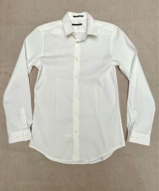 Camisa algodon finíssimo, popelín, entallada. Es una L pero muy pequeña y entallada. M real confección espectacular puños y cuello