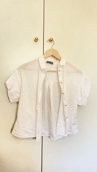 Elegante camisa de Emporio Armani en color blanco. Perfecta para un look casual o formal. 100% lino. - Manga corta. - Cuello clásico. - Cierre de botones.