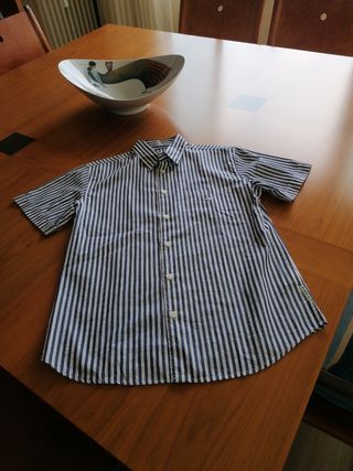 Camisa de Armani de manga corta y rayas azaul marino. Talla 12 años 154 cm