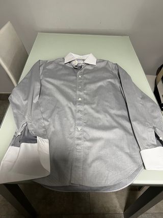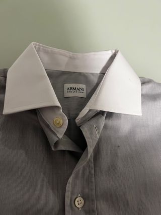 camisa Armani color gris rayas verticales. puños y camisa no son los originales.