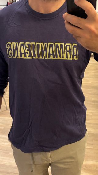 Escucho ofertas. Preciosa camiseta de Emporio Armani, talla L, color azul marino. Es una prenda elegante y cómoda, ideal para cualquier ocasión. - Ajuste entallado. - Logo Emporio Armani en el pecho. - Tejido suave y de calidad.