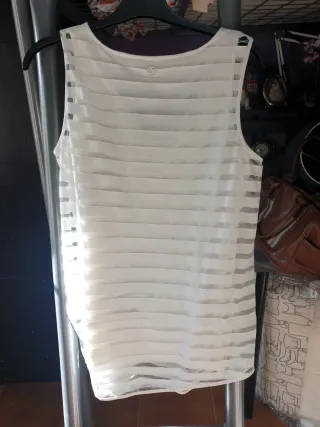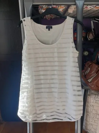 Elegante top sin mangas de Armani Collezioni con un diseño de rayas en tonos beige y blanco. Perfecto para añadir un toque sofisticado a tu atuendo. - Diseño de rayas horizontales. - Acabado texturizado.