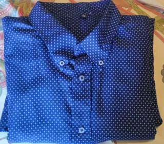 Camisa de manga larga con un discreto estampado. - Cuello clásico. - Cierre de botones. - Puños abotonados. Talla oficial es XL pero en realidad es pequeña. Yo llevo M normalmente y me queda perfecta
