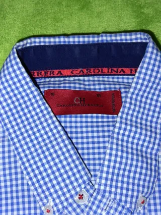 Camisa de cuadros de Carolina Herrera. - Diseño de cuadros vichy en azul y blanco. - Logo bordado en rojo en el pecho.
