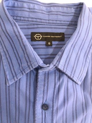 Camisa 👔 100% algodón. Color azul cielo con rayas azules oscuro. Muy original y elegante. Está en muy buen estado. Marca: Things Contempo. Medidas: Hombro: 44 cm De axila a axila: 56 cm Mangas: 65 cm Largo total: 77 cm 〖 ☞ Sisi, hacemos ✈ envíos.☜ ✍Consúltanos si tienes alguna pregunta. Por favor, visita nuestro perfil. Sería genial ✌ si nos guardas entre tus favoritos 🧡 de Walla. Muchas gracias🙏. Sandra y Patrick 〗 #camisahombre #camisatalla46 #camisahombremorado #camisaarayas #thingscontempo