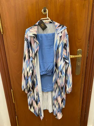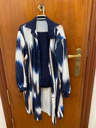 Conjunto Camisa Larga Estampada y Top Azul