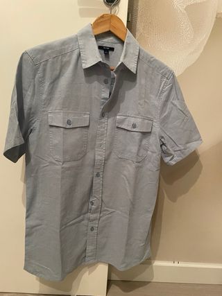 Camisa Original de la prestigiosa marca Lacoste, comprada en tienda oficial. Camisa de manga corta, con tonos suaves de colores azules y blancos, con logotipo en el bolsillo delantero. Tejido de excelente calidad (100 por cien algodón). Con 2 botones de repuesto. Camisa muy bonita com muy poco uso, como nueva. Talla 38 (corresponde a una talla M). Medidas: Hombros: 46 cms Mangas: 24 cms Largo: 76 cms Axilas: 56 cms Se vende por falta de uso.