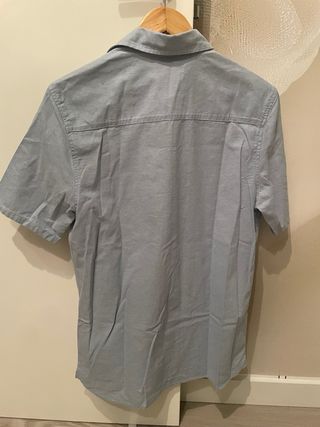 Usada un par de veces Camisa de manga larga con un diseño moderno y detalles distintivos. - Coderas de color Azul. - Cuello con botones. - Pequeño bordado en el pecho.