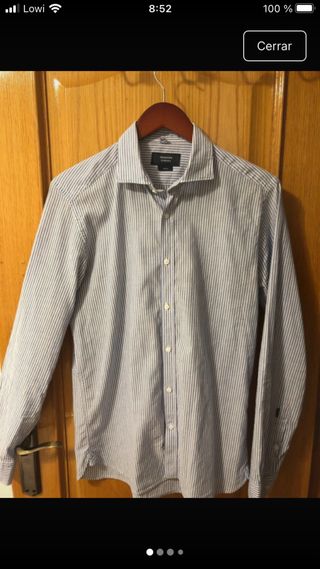 Camisa de manga larga con un diseño de rayas verticales en azul y blanco. Se encuentra en perfecto estado, con muy poco uso. - Diseño de rayas verticales. - Cuello camisero. - Cierre de botones. Posibilidad de entrega en mano si vives en Madrid.