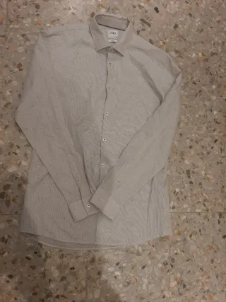 Camisa de manga larga de Zara. - Diseño con microestampado de topos. - Cuello camisero. - Cierre de botones. Talla L