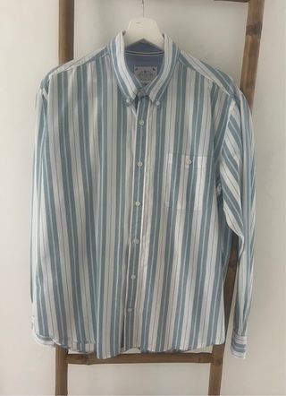 Camisa de rayas en azules y blanco. Muy bonita, es 100 % algodón, de tela fina y fresca, perfecta para los dias de calor o trabajar en la oficina. Como nueva.