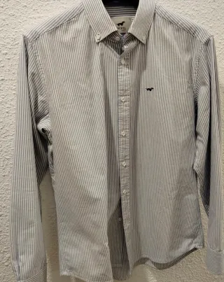 Camisa en perfecto estado, sin desperfectos. Usada tan solo un par de veces. - Corte recto (regular fit), cuello tradicional y botones frontales blancos con el nombre de la marca en hilo a contraste. - Puño con doble botón y botones de repuesto. - Detalle del logo de la marca bordado en faldón delantero. - Diseño de cuadros tipo tartán en tonos azul marino, gris y naranja. - Etiqueta interior cortada porque molestaba. Ancho hombros: 50 cm Largo: 79 cm Largo manga: 69 cm