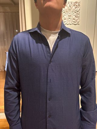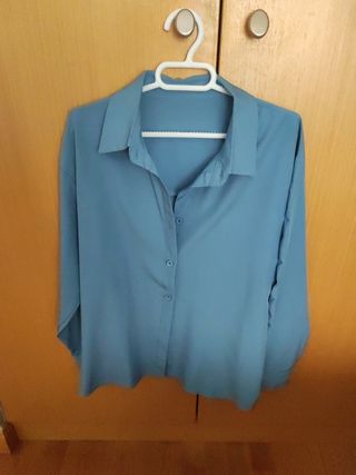 Camisa azul de hombre, de manga larga. 100 % algodón. Utilizada en dos ocasiones.
