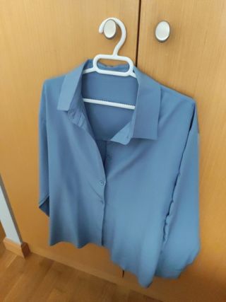 Elegante camisa de Zara en color azul eléctrico, con un acabado satinado que le da un toque sofisticado. - Manga larga. - Cuello camisero. - Cierre de botones.