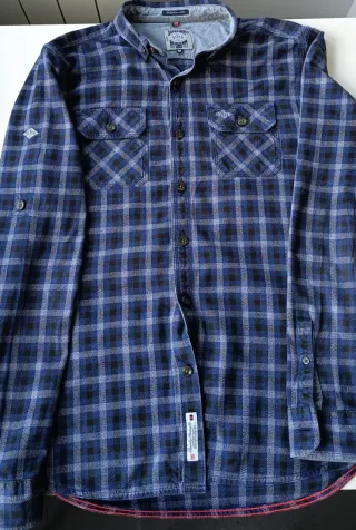 Camisa de cuadros de la marca Superdry. - Diseño a cuadros en tonos azules y negros. - Talla M.