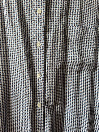 Camisa de manga larga con un bonito estampado de plumas en tonos azules y anaranjados. - Cierre de botones. - Dos bolsillos en el pecho. No la he usado porque uso xs y me está grande